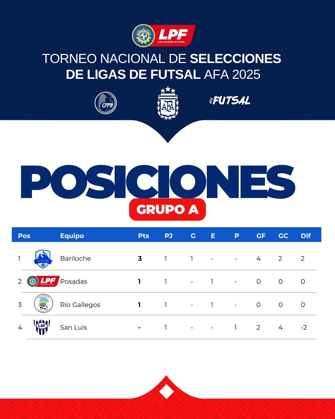 Por su parte, el domingo será el turno de Ágil de Gobernador Roca vs Garupá FC y El Brete vs Luz y Fuerza, ambos desde las 16:30.