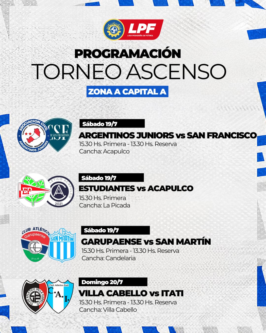 Este sábado 19 y domingo 20 de julio se jugarán ocho encuentros correspondientes a la zona Capital y Zona Campeonato.