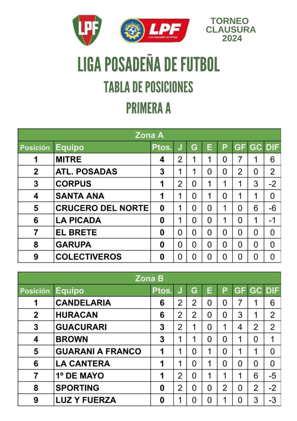 Por otra parte, en los otros tres partidos que se jugaron en la jornada, Deportivo Corpus igualó 1-1 ante Santa Ana, en cancha de La Picada, 1ro de Mayo sacó un punto valioso ante La Cantera después de empatar 0-0. Por último, el Indio en condición de local cayó ante Huracán por 2-1.