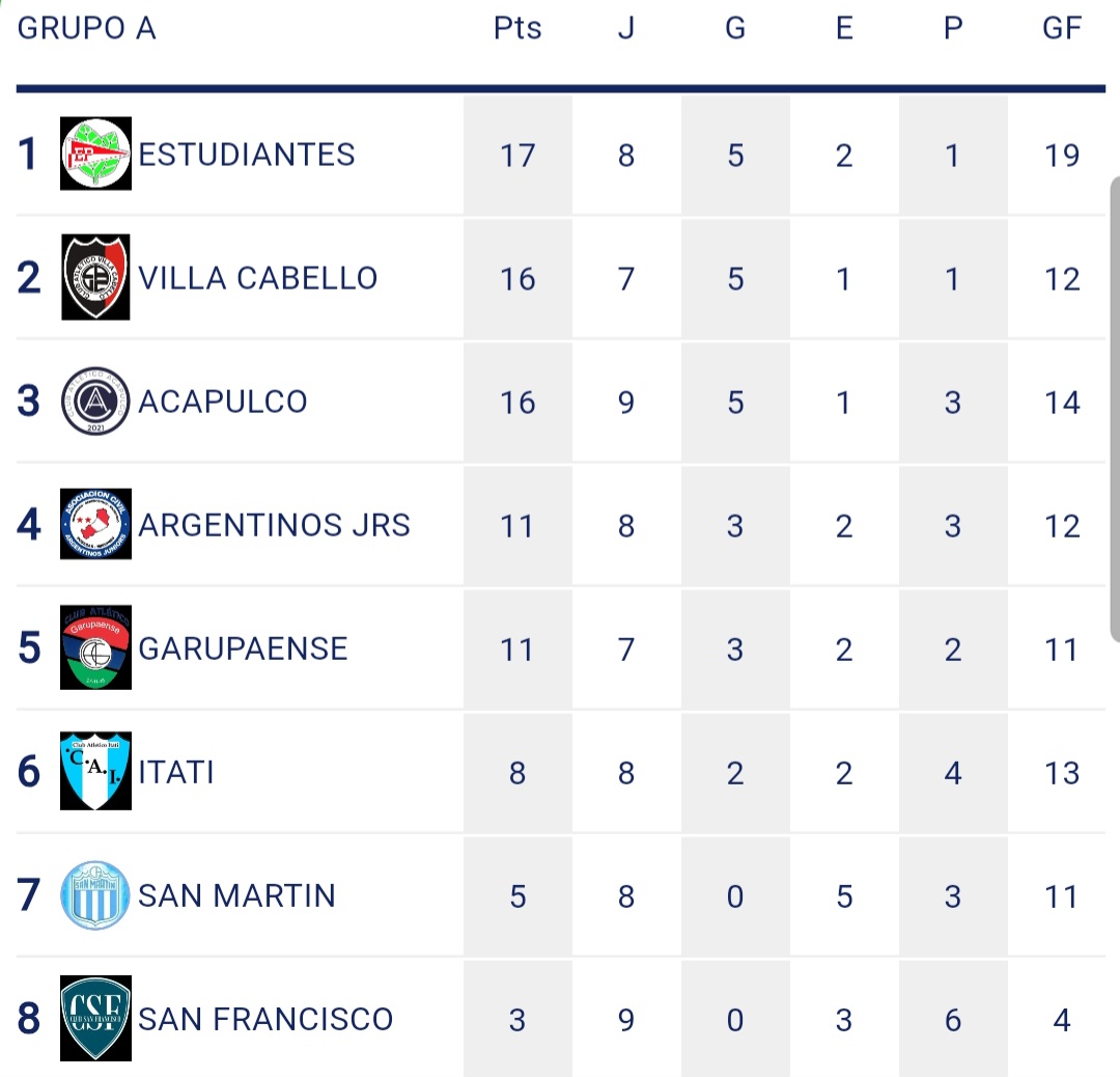Por último, Acapulco festejó su triunfo ante Itatí. Fue por 1 a 0 en condición de local con gol de Máximo Britez.