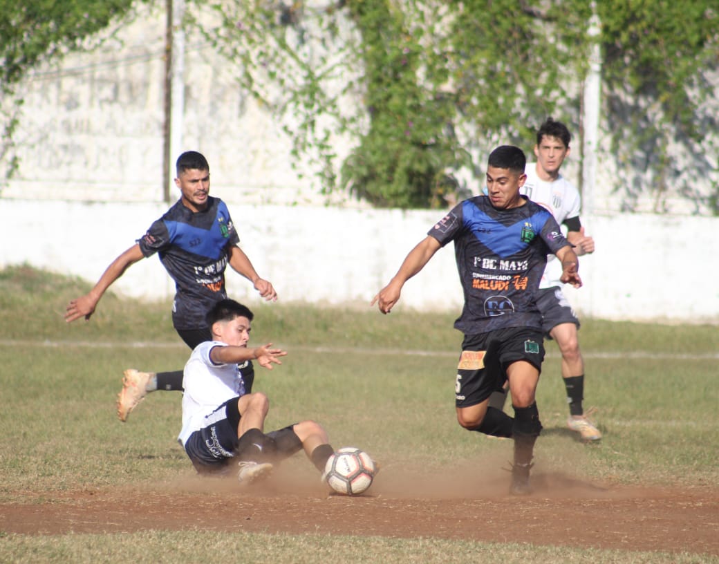 En el primer tiempo, fue el equipo local quien intentó más, pero 1ro de Mayo se defendió de una forma inteligente varios minutos, también propuso el contraataque por intermedio de Kuntz y los hermanos Lujan. Pero cuando cerraba la primera etapa el equipo dirigido por Gustavo Maidana tuvo chances claras por intermedio de Walter Solis y Defilippi que avisaban.