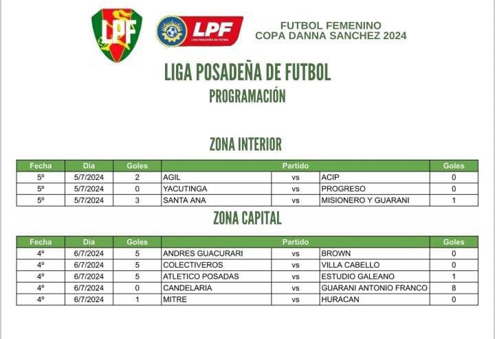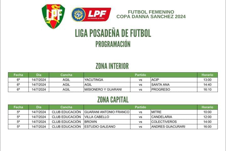 La Liga Posadeña de fútbol femenino, denominada Copa “Danna Sánchez 2024” ya entró en su 6ta fecha, la cancha de Ágil en Roca y el Club de Educación en Posadas serán las sedes para todos los partidos.