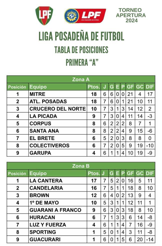 En tanto que por la Zona A, el sábado se cruzarán en Corpus, el Tricolor y La Picada, en un duelo que está en juego más que tres puntos.
