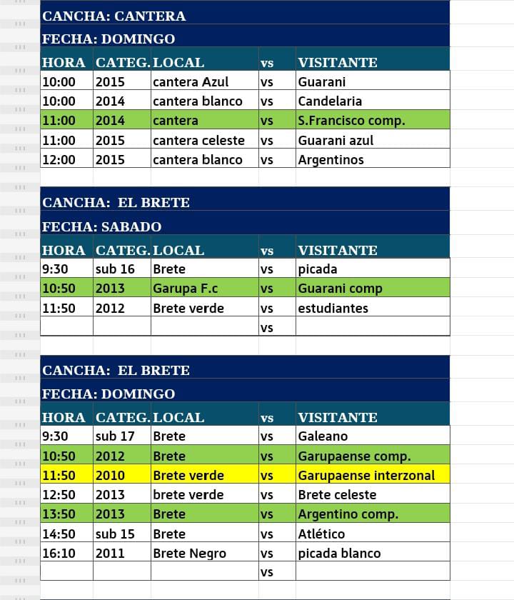 Se volvió a lanzar la sexta por el aplazo de los partidos semanas atrás, por eso habrán muchos partidos entre el sábado y domingo en cancha de El Brete, además sobre la avenida Jauretche las canchas de La Cantera serán el escenario el domingo de muchos encuentros, por otra parte San Francisco, Estudio Galeano, Guacurarí, Colectiveros y Atlético Posadas también tendrán acción de la redonda en los más chicos.