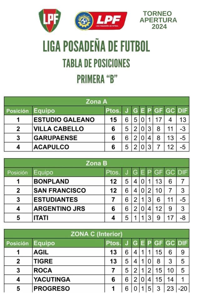 Finalmente, la Zona C disputará sus partidos el sábado: Yacutinga ante Deportivo Roca y el líder Tigre recibirá a Deportivo Progreso.
