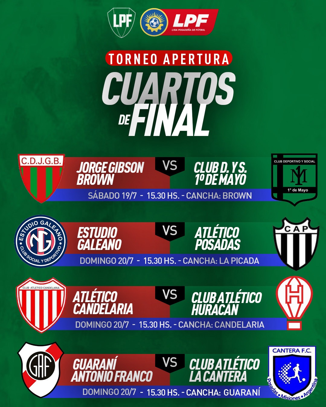 Este fin de semana se disputarán los cuartos de final del Apertura posadeño. Serán a partido único en cancha del mejor clasificado.